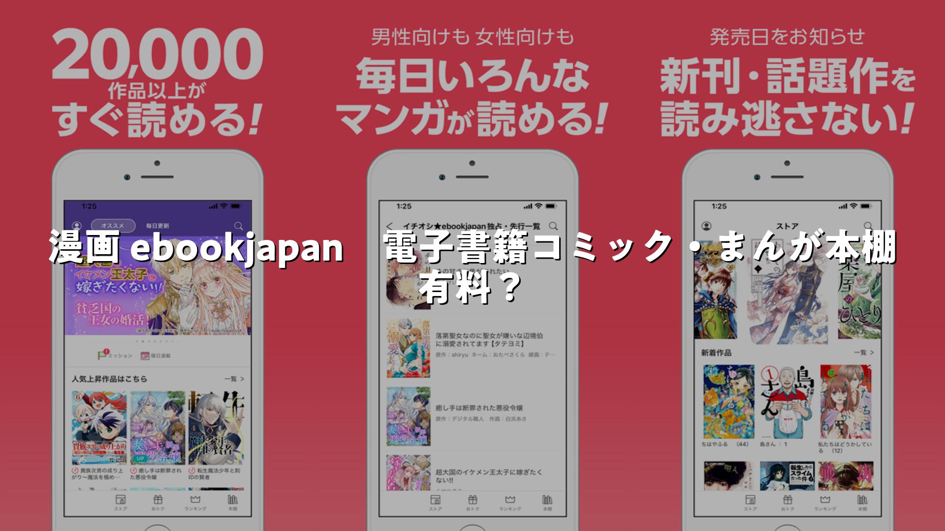 漫画 ebookjapan 電子書籍コミック・まんが本棚 有料?アプリを漫画好き目線でレビュー・調査