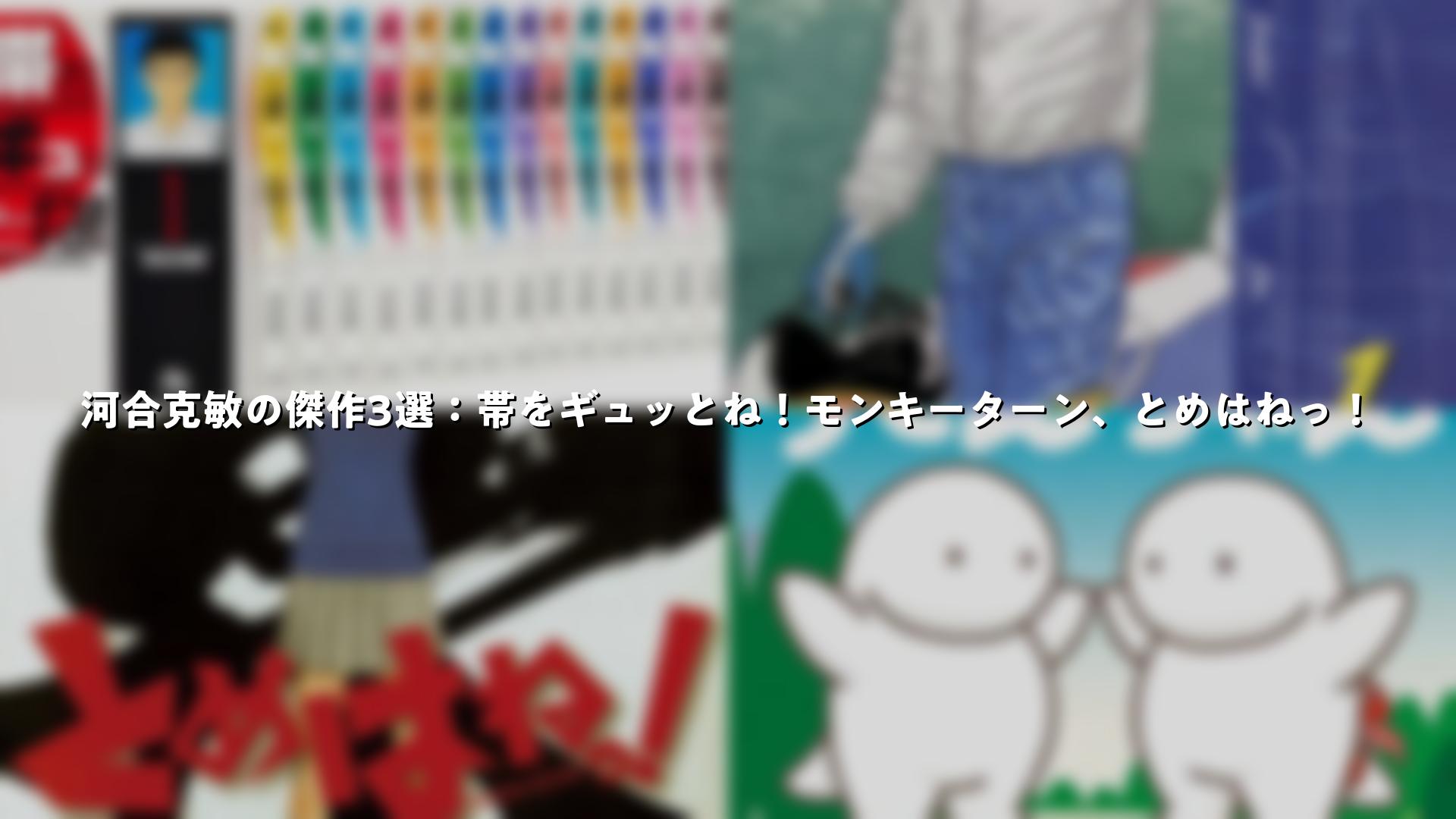 河合克敏の傑作3選:帯をギュッとね!モンキーターン、とめはねっ!をまとめました