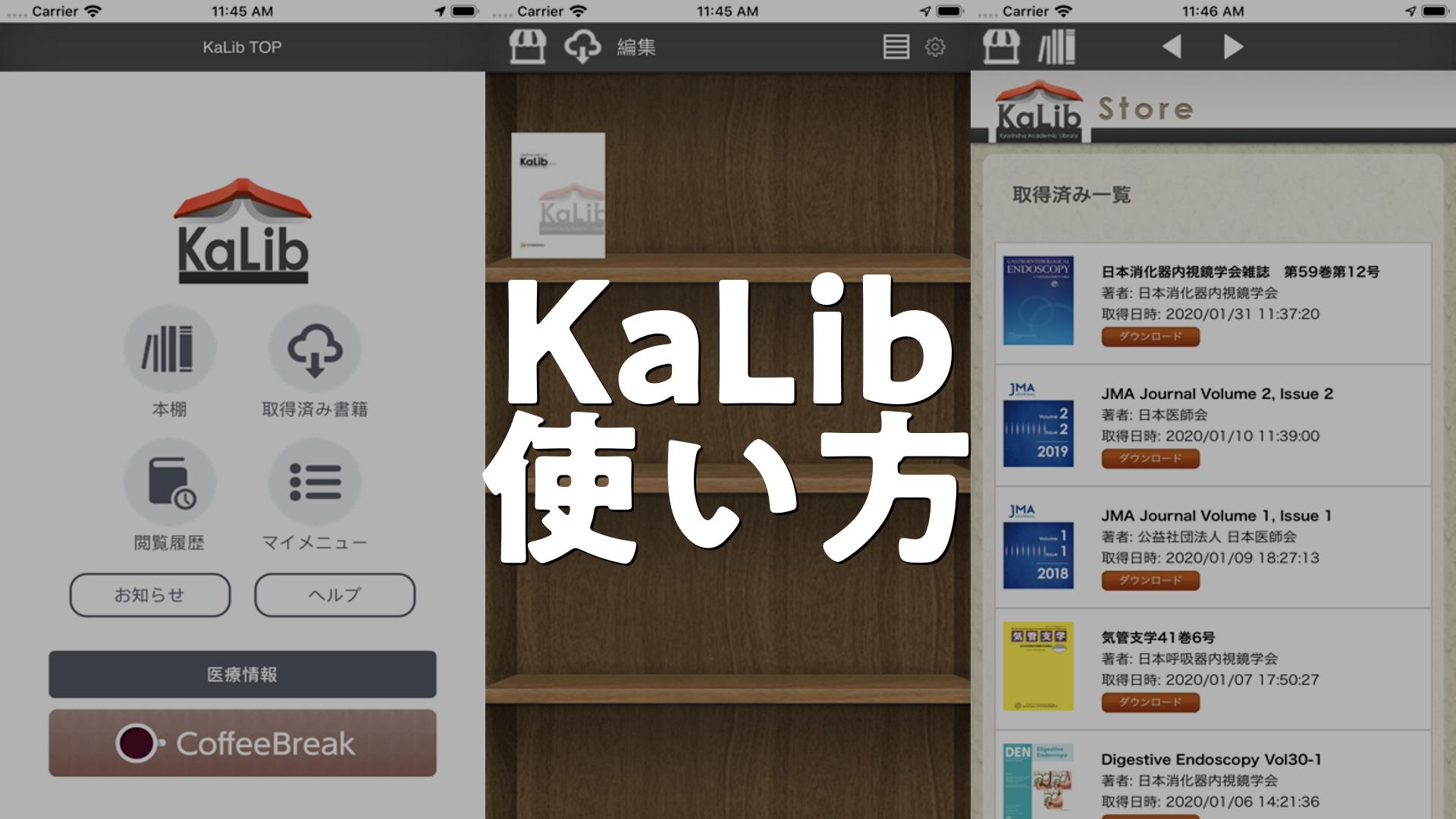 KaLibは杏林社が提供する学術向け電子書籍サービスで、学会誌や専門書、ガイドラインなどをまとめて閲覧できるリーダーアプリです。十字スクロールや付箋の共有、SNS連携など学術利用を想定した機能が搭載されており、学会認証や有料コンテンツも扱う専門性の高いプラットフォームです。