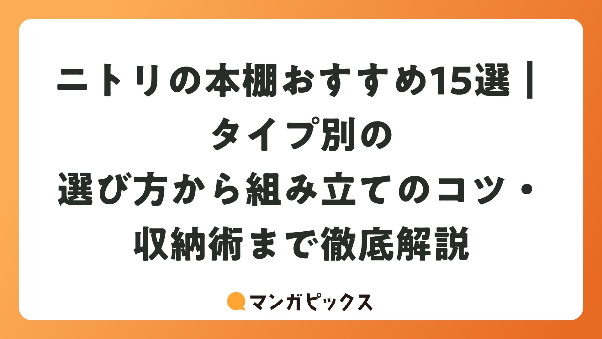 ニトリの本棚は約3,000円〜40,000円の幅広い価格帯で、オープン・スライド・回転・扉付き・壁面収納と5タイプ以上を展開しています。結論から言えば、漫画を大量に収納したいならスライド式、省スペース重視なら回転式、見た目にこだわるなら扉付きかNポルダがおすすめです。この記事では、タイプ別の特徴から選び方、組み立てのコツ、おしゃれな収納術まで、購入前に知っておきたい情報をまとめました。