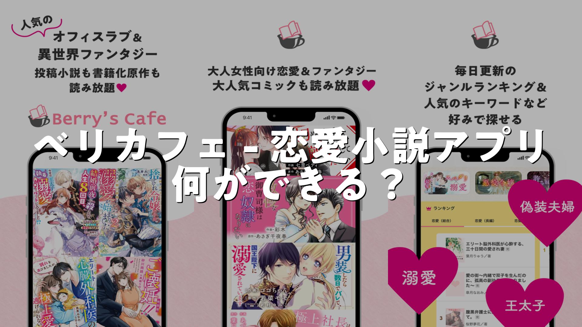 ベリカフェは恋愛小説と異世界ラブファンタジーを中心に、コミック化作品まで含めて幅広く楽しめるプラットフォームです。