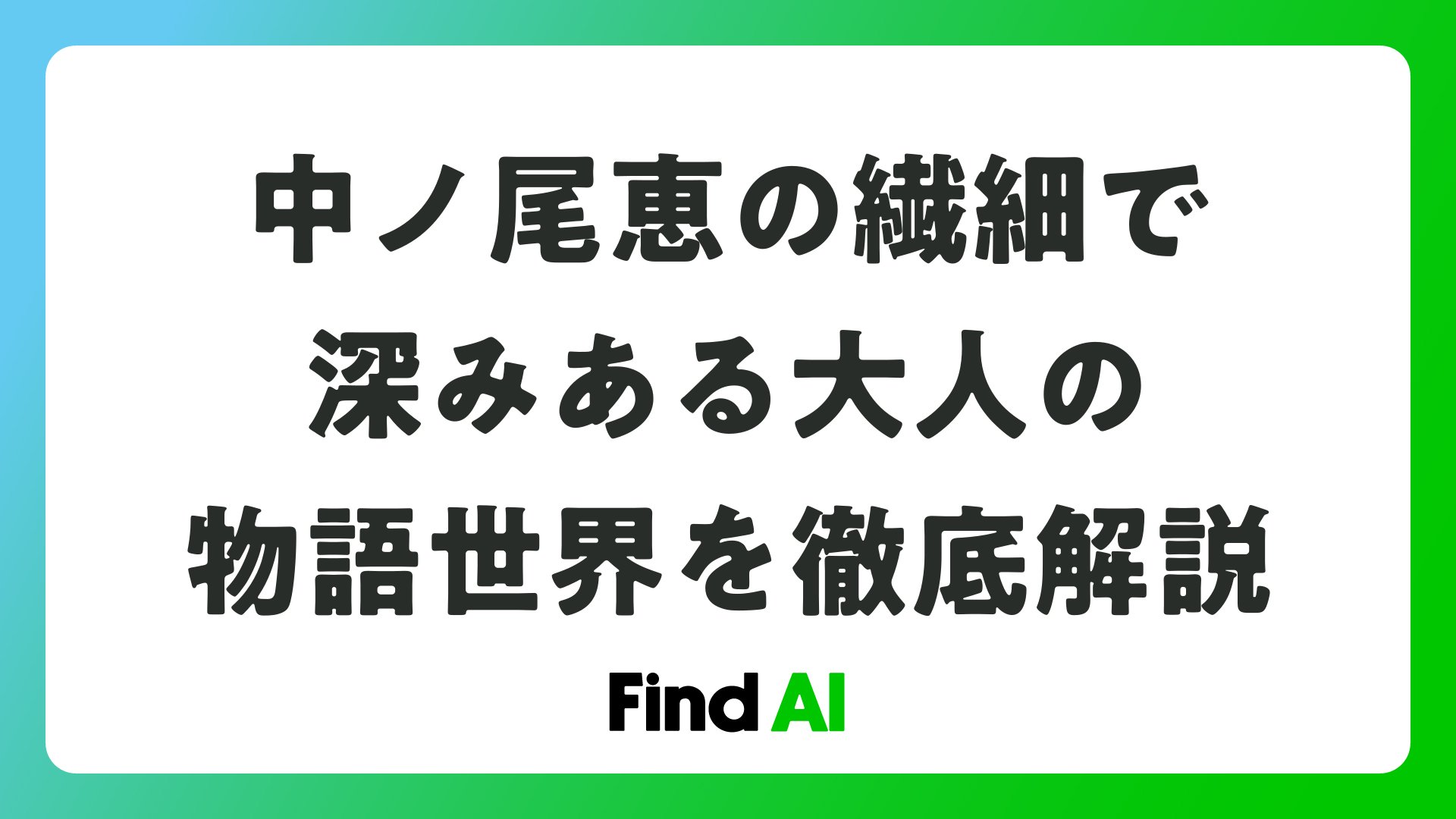 中ノ尾恵の繊細で深みある大人の物語世界を徹底解説をまとめました