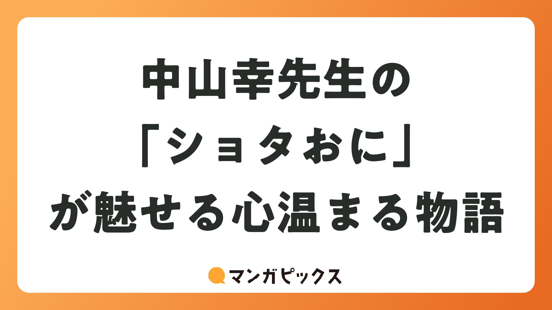 中山幸先生の「ショタおに」が魅せる心温まる物語をまとめました