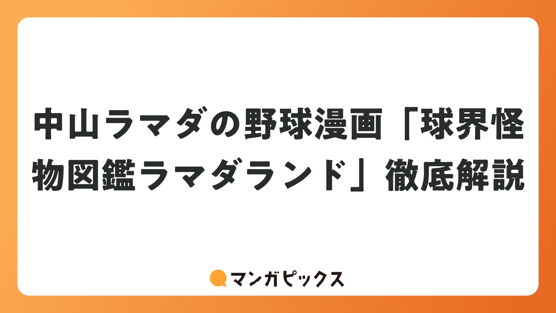 中山ラマダの野球漫画「球界怪物図鑑ラマダランド」徹底解説をまとめました