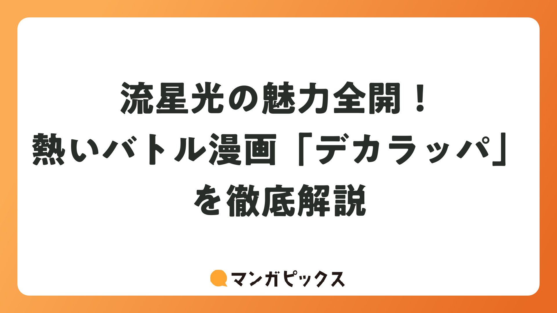 流星光の魅力全開!熱いバトル漫画「デカラッパ」を徹底解説をまとめました