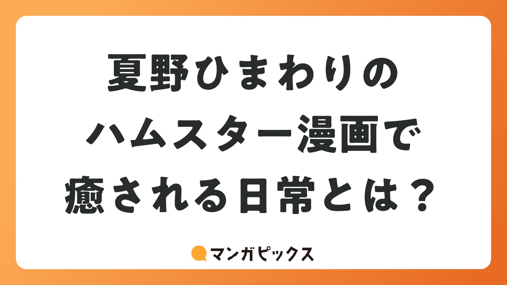 マンガ好きの皆さん、こんにちは! 今回は夏野ひまわりさんの作品にスポットを当ててみましょう。ハムスターを主人公にした愛らしい漫画で知られる彼女の作品は、日常の癒しを届けてくれる逸品ばかりです。デビュー以来、ハムスターの魅力を存分に描き出した可愛い動物漫画の代表格として、多くの読者を虜にしています。この記事では、彼女の代表作を中心に、マンガレビューメディアらしい視点でポジティブに深掘りしていきます。