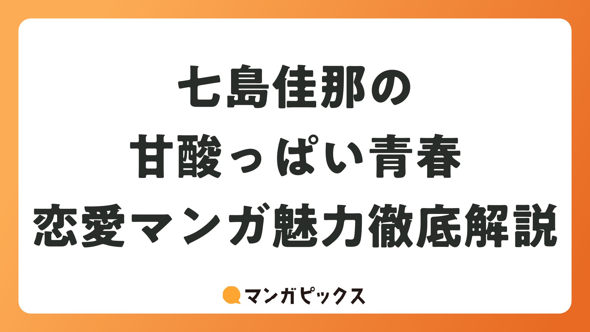七島佳那の甘酸っぱい青春恋愛マンガ魅力徹底解説をまとめました
