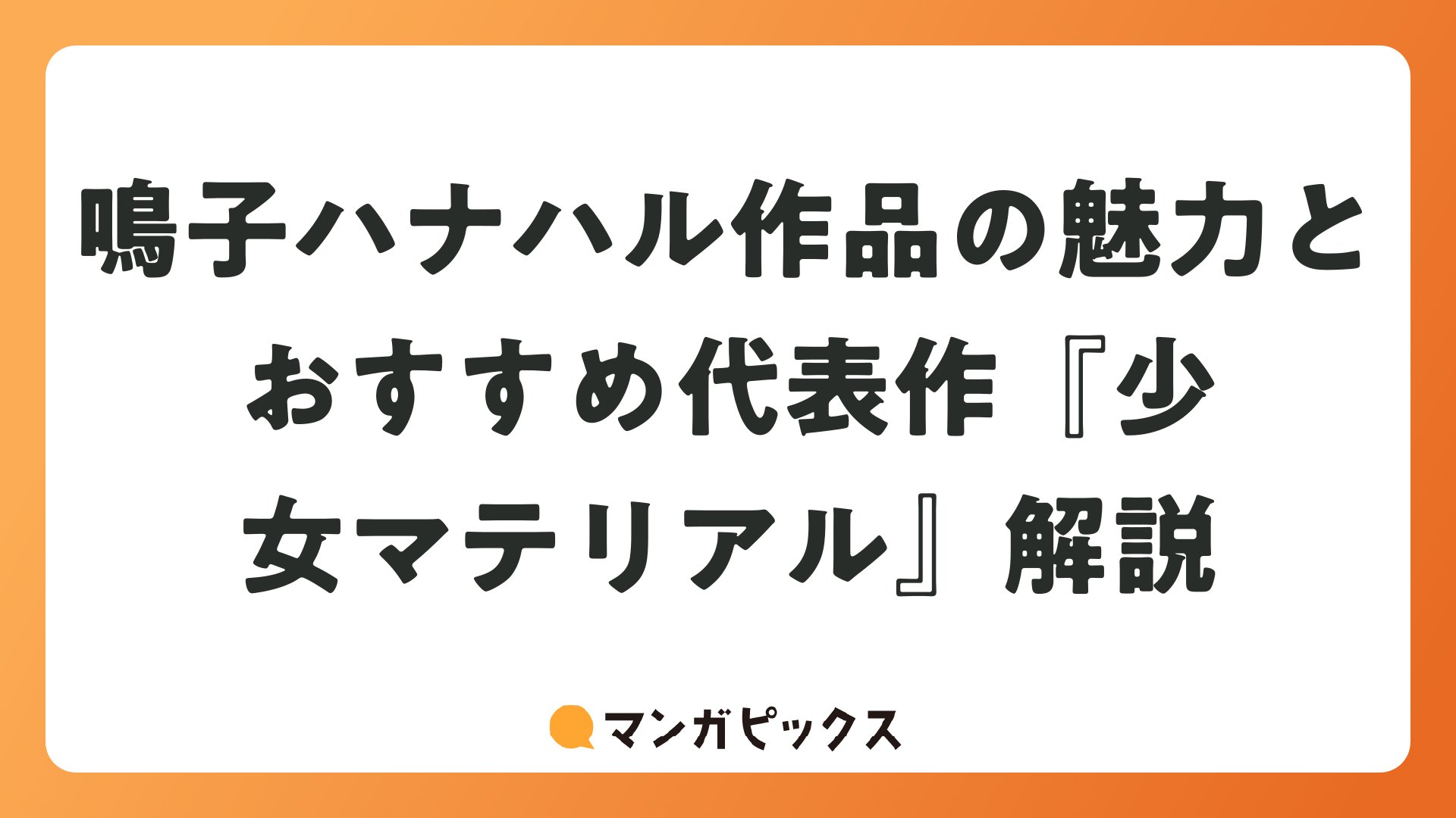鳴子ハナハル作品の魅力とおすすめ代表作『少女マテリアル』解説