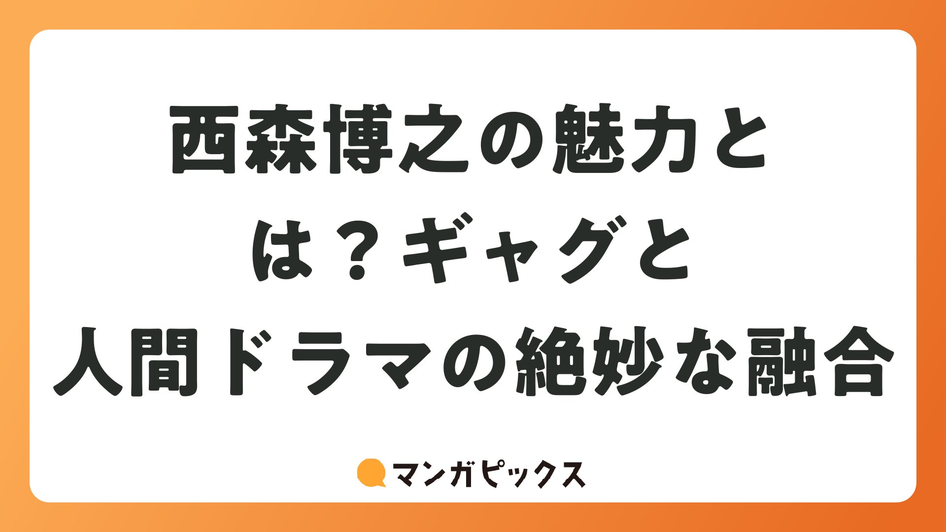 西森博之は、ユーモアあふれるストーリーテリングと魅力的なキャラクターで知られる漫画家です。彼の作品は、笑いあり涙ありのエンターテイメントが満載で、マンガレビュー・おすすめメディアの読者にとって欠かせない存在です。特にギャグコメディやヤンキーもの、心温まる人間ドラマが得意で、長年多くのファンを魅了し続けています。この記事では、西森博之の代表作を中心に、読者が楽しめるポイントを詳しく紹介します。