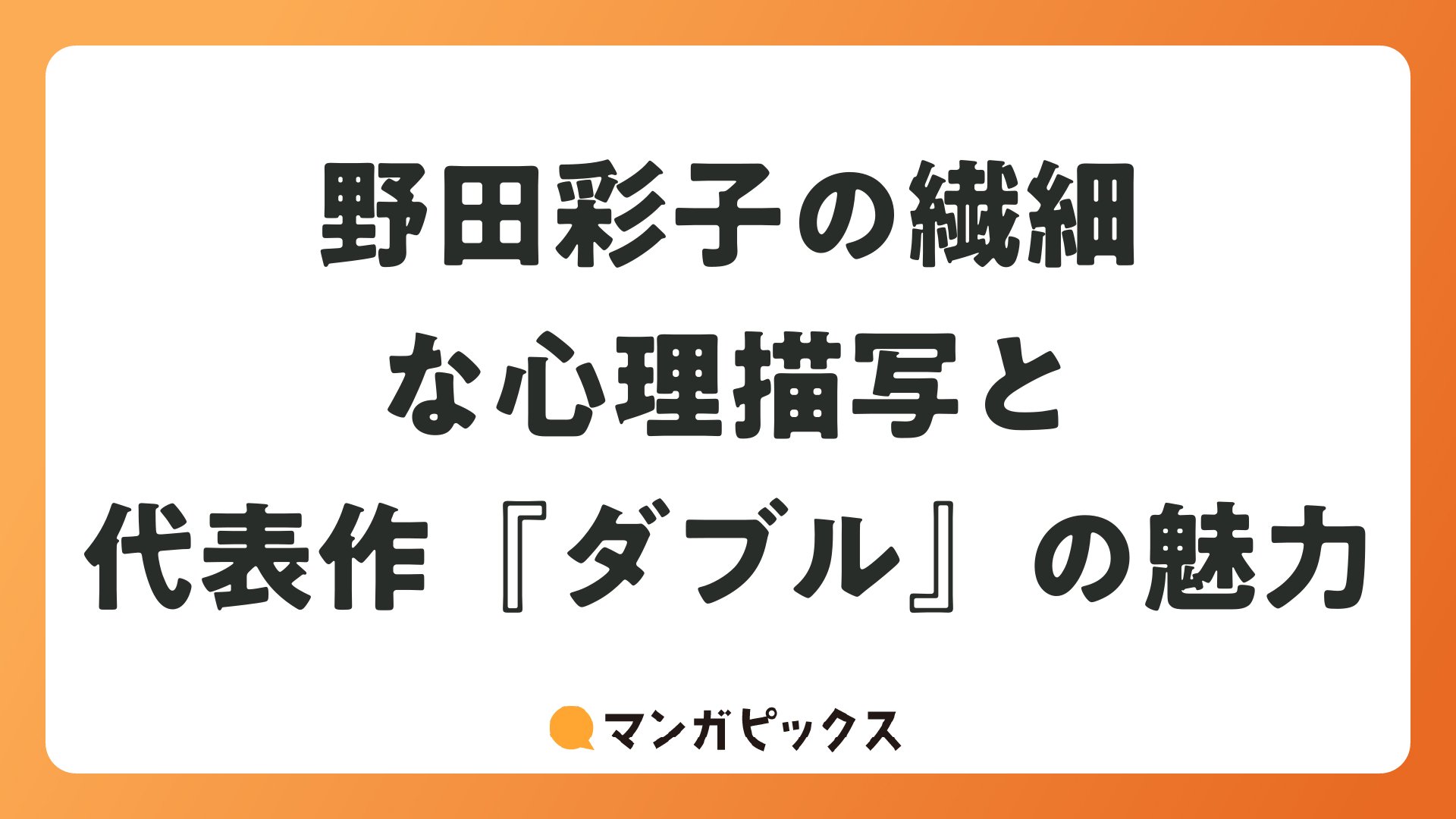 野田彩子の繊細な心理描写と代表作『ダブル』の魅力をまとめました