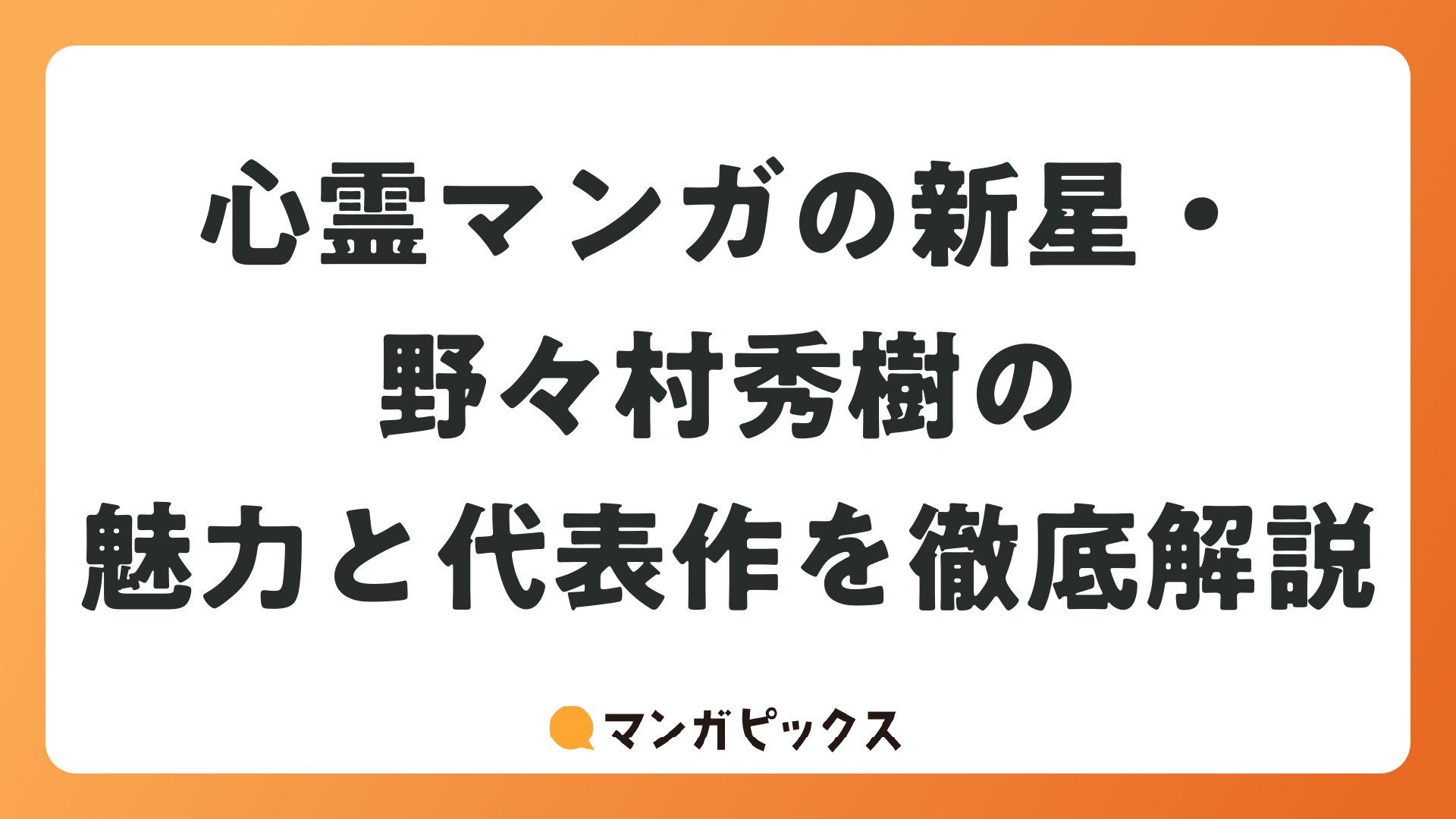 心霊マンガの新星・野々村秀樹の魅力と代表作を徹底解説をまとめました