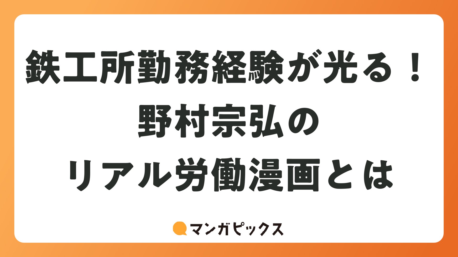 野村宗弘のマンガは、鉄工所のリアルとユーモアが融合した宝石箱。実体験に基づく溶接描写と広島弁の魅力で、読者を虜にします。マンガレビュー・おすすめメディアとして、心から推奨!