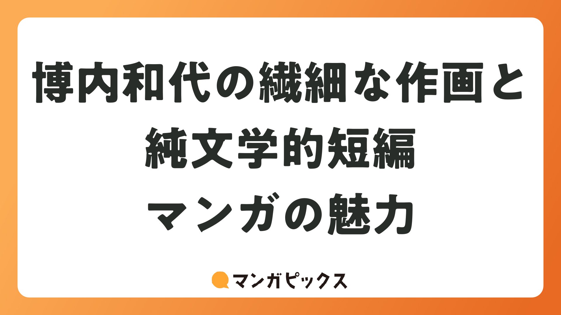 博内和代の繊細な作画と純文学的短編マンガの魅力をまとめました