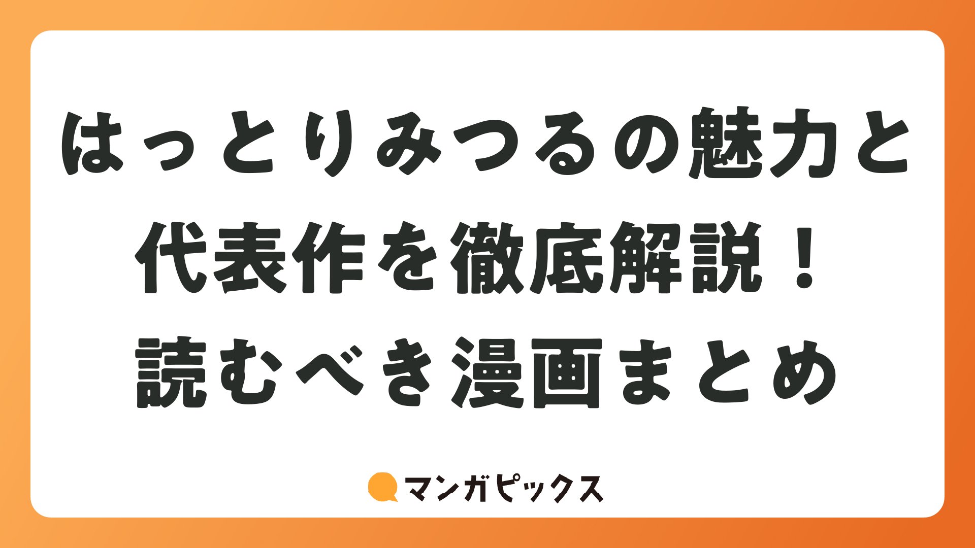 はっとりみつるの魅力と代表作を徹底解説!読むべき漫画まとめをまとめました