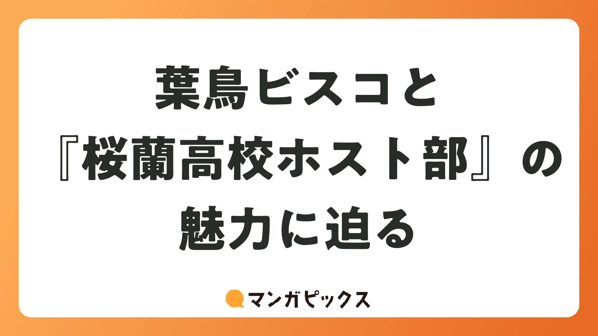 葉鳥ビスコと『桜蘭高校ホスト部』の魅力に迫るをまとめました