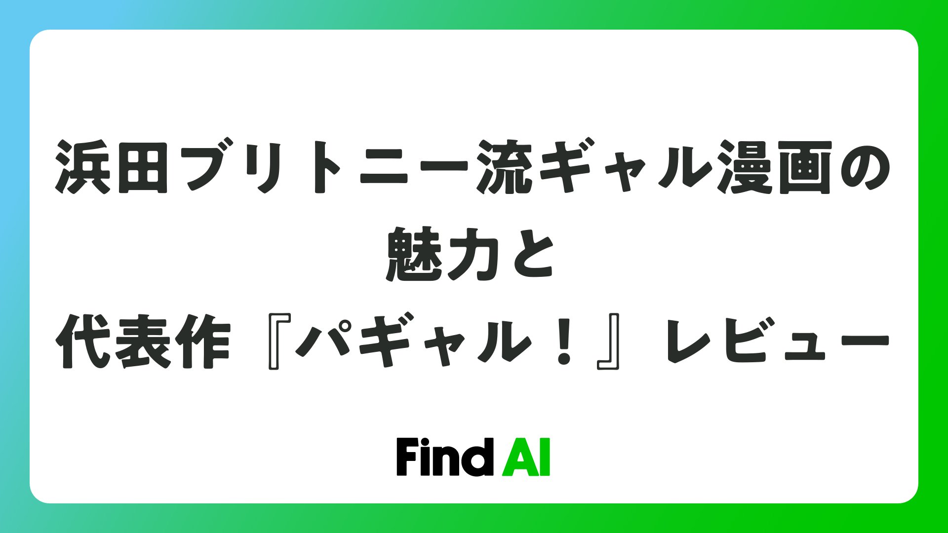浜田ブリトニー流ギャル漫画の魅力と代表作『パギャル!』レビューをまとめました