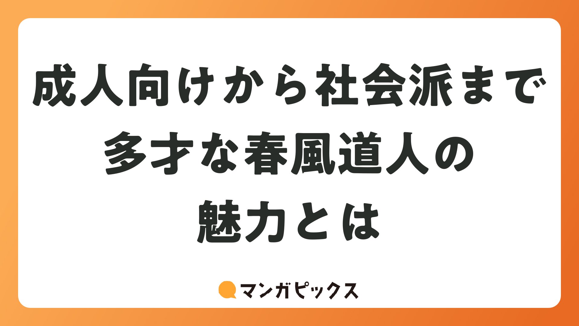成人向けから社会派まで多才な春風道人の魅力とはをまとめました