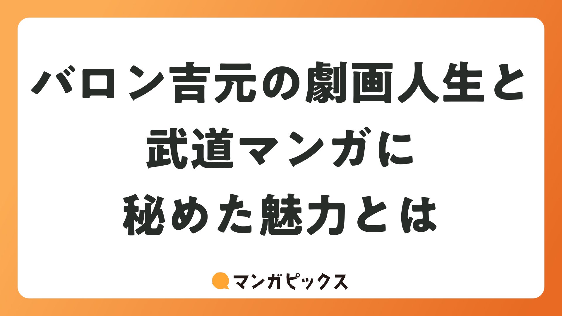 バロン吉元の劇画人生と武道マンガに秘めた魅力とはをまとめました