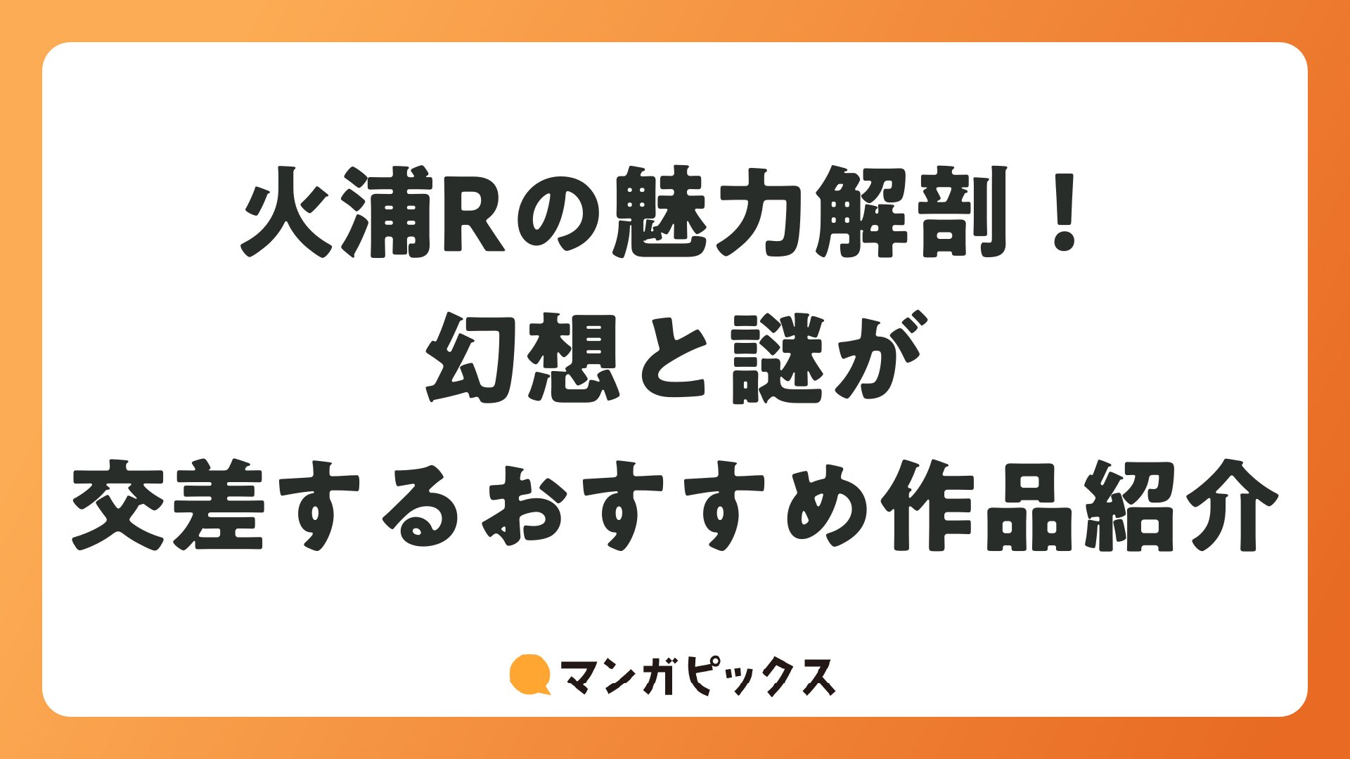 火浦Rの魅力解剖!幻想と謎が交差するおすすめ作品紹介をまとめました
