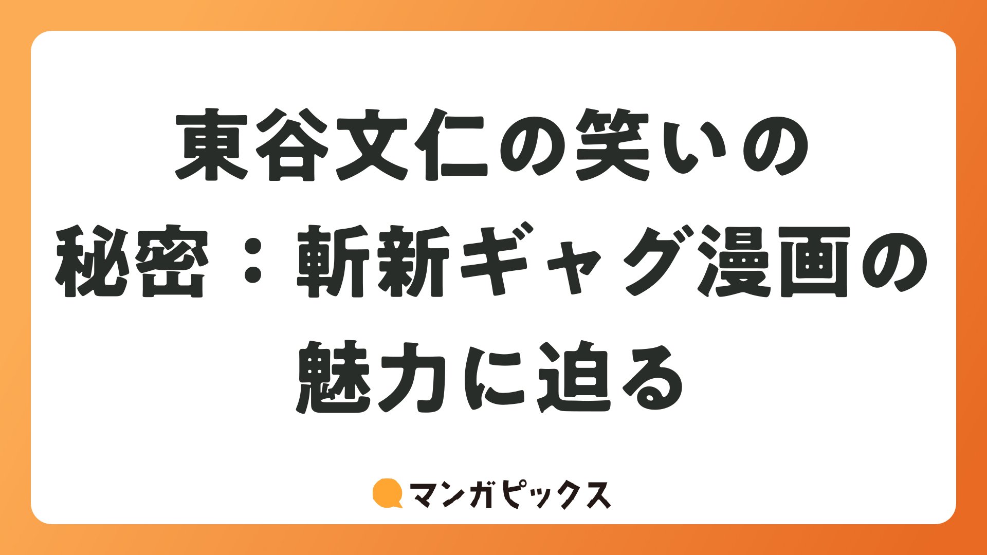 東谷文仁の笑いの秘密:斬新ギャグ漫画の魅力に迫るをまとめました