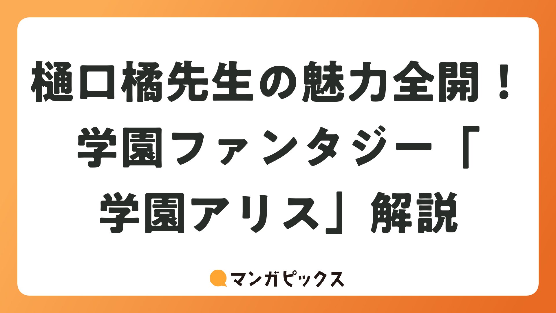 樋口橘先生の魅力全開!学園ファンタジー「学園アリス」解説をまとめました