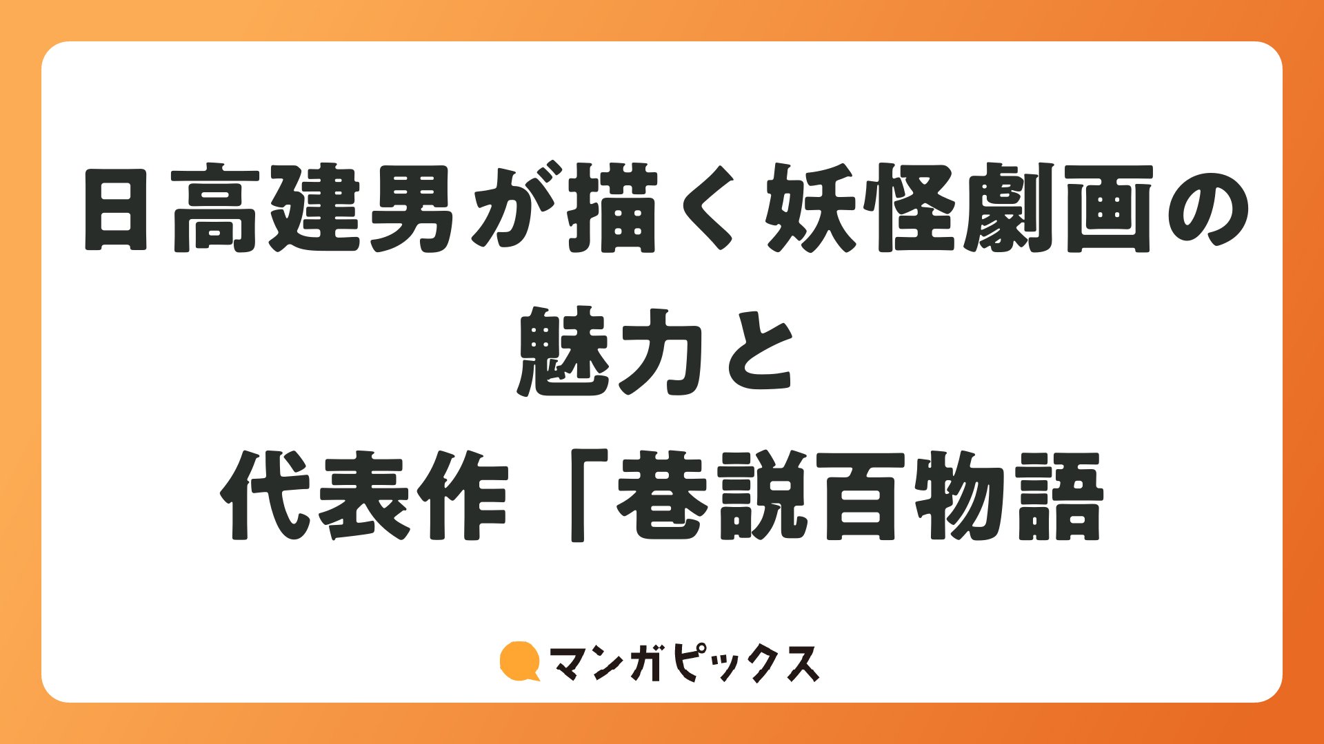 日高建男が描く妖怪劇画の魅力と代表作「巷説百物語をまとめました