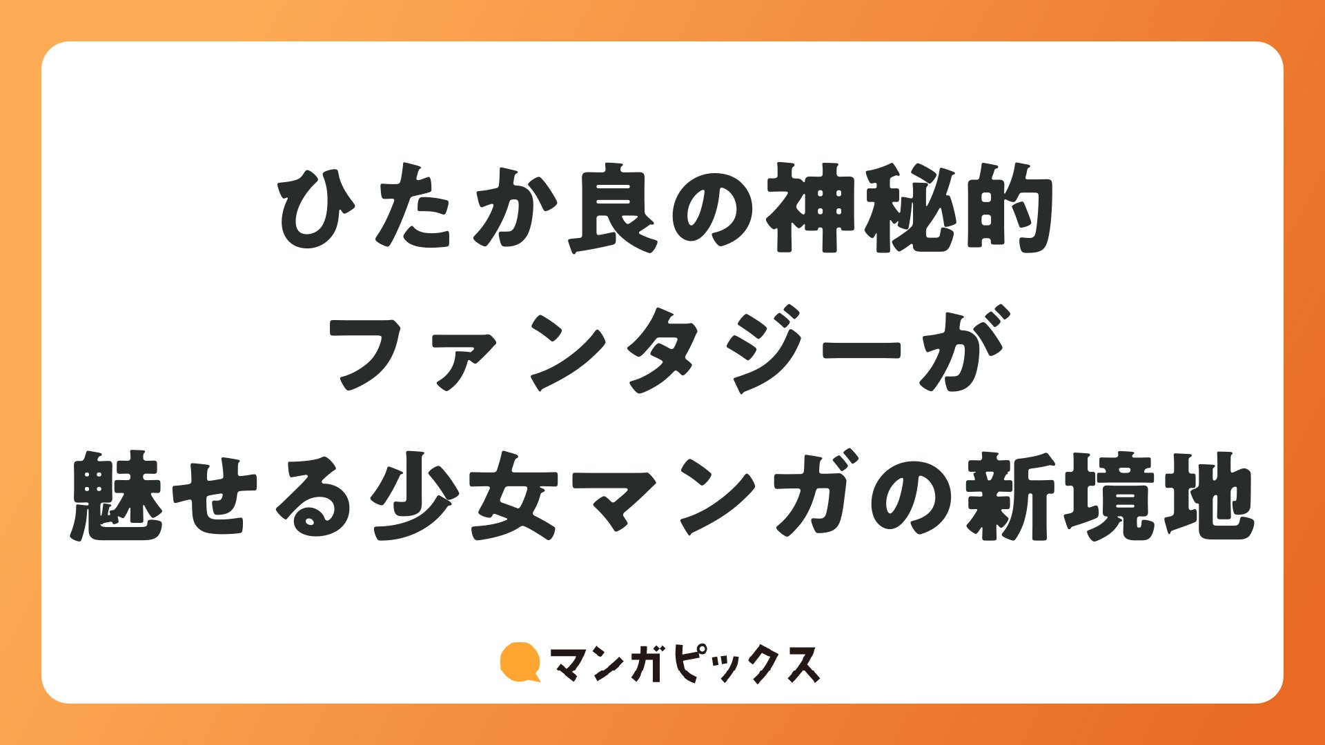 ひたか良の神秘的ファンタジーが魅せる少女マンガの新境地をまとめました