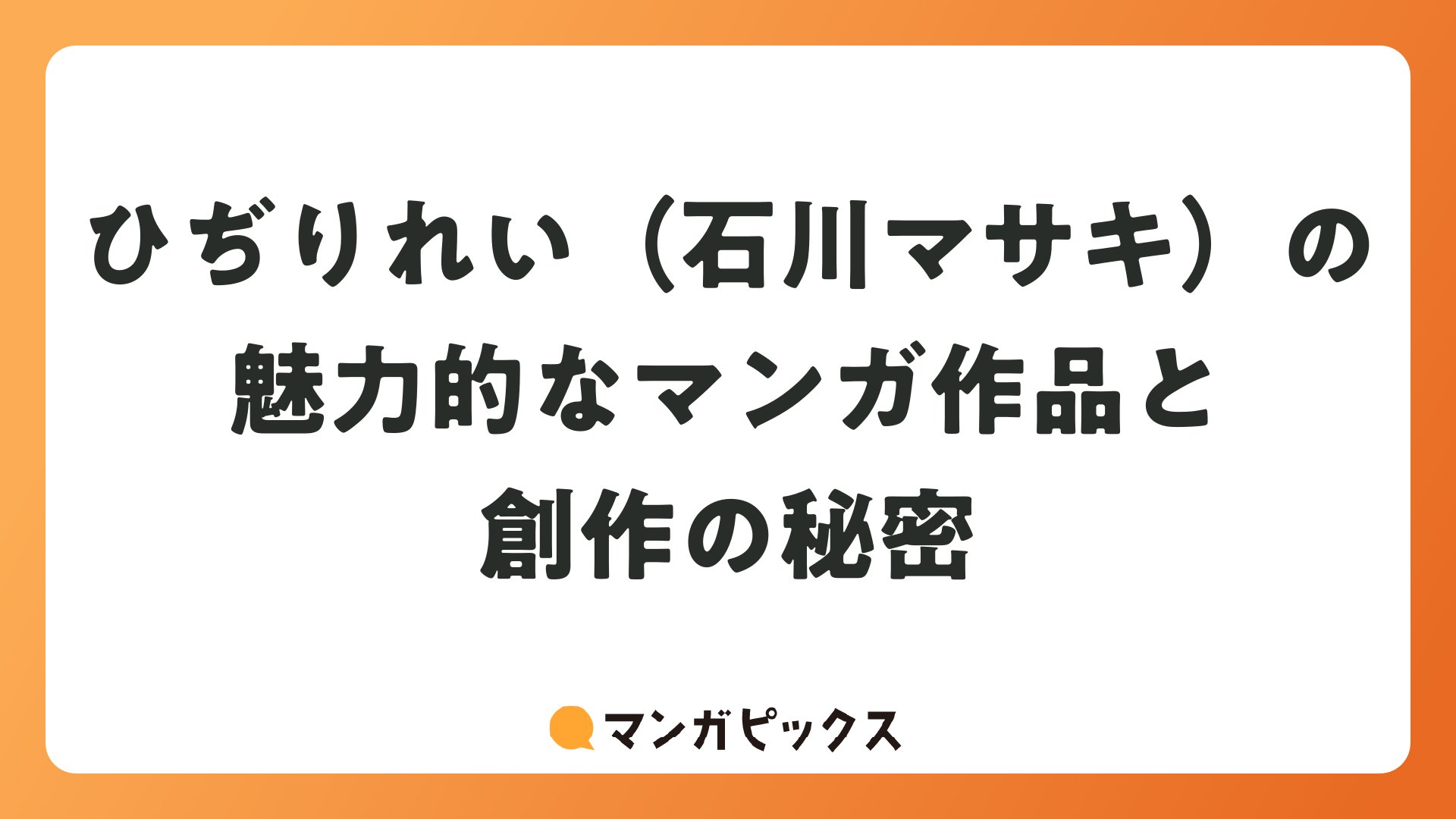 ひぢりれい(石川マサキ)の魅力的なマンガ作品と創作の秘密をまとめました