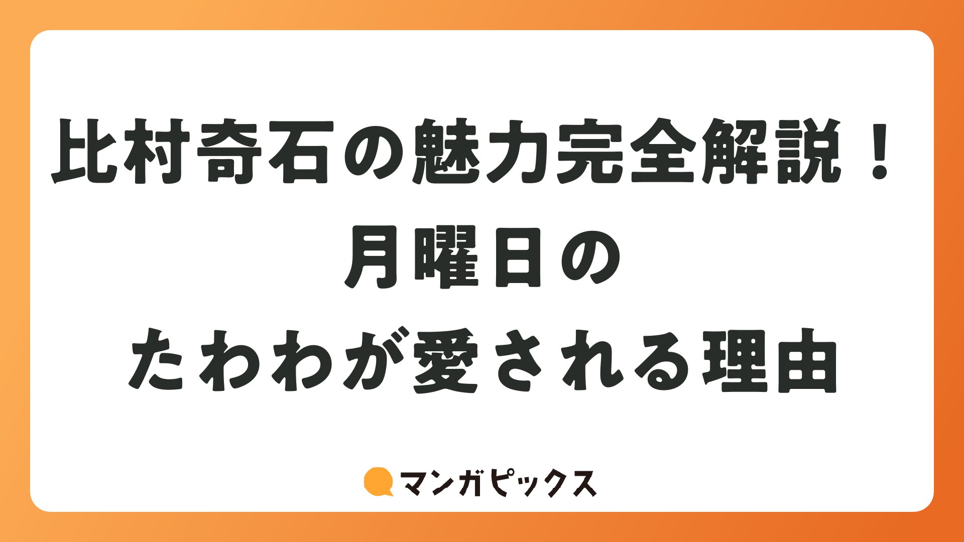 今後の活躍が楽しみな比村奇石。月曜日のたわわの続巻や新作ガチアクタの展開に期待大です。読者レビューからわかるように、作画とストーリーの両輪で進化中。マンガファンとして、応援したくなる作者です。