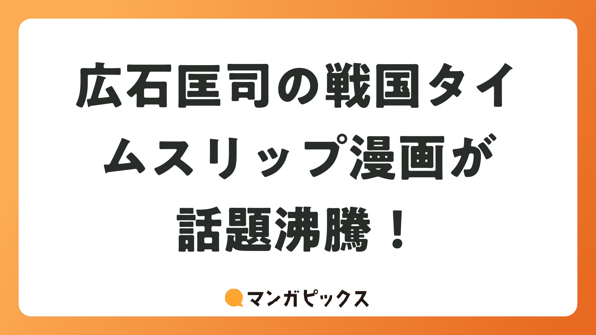 広石匡司の戦国タイムスリップ漫画が話題沸騰!をまとめました