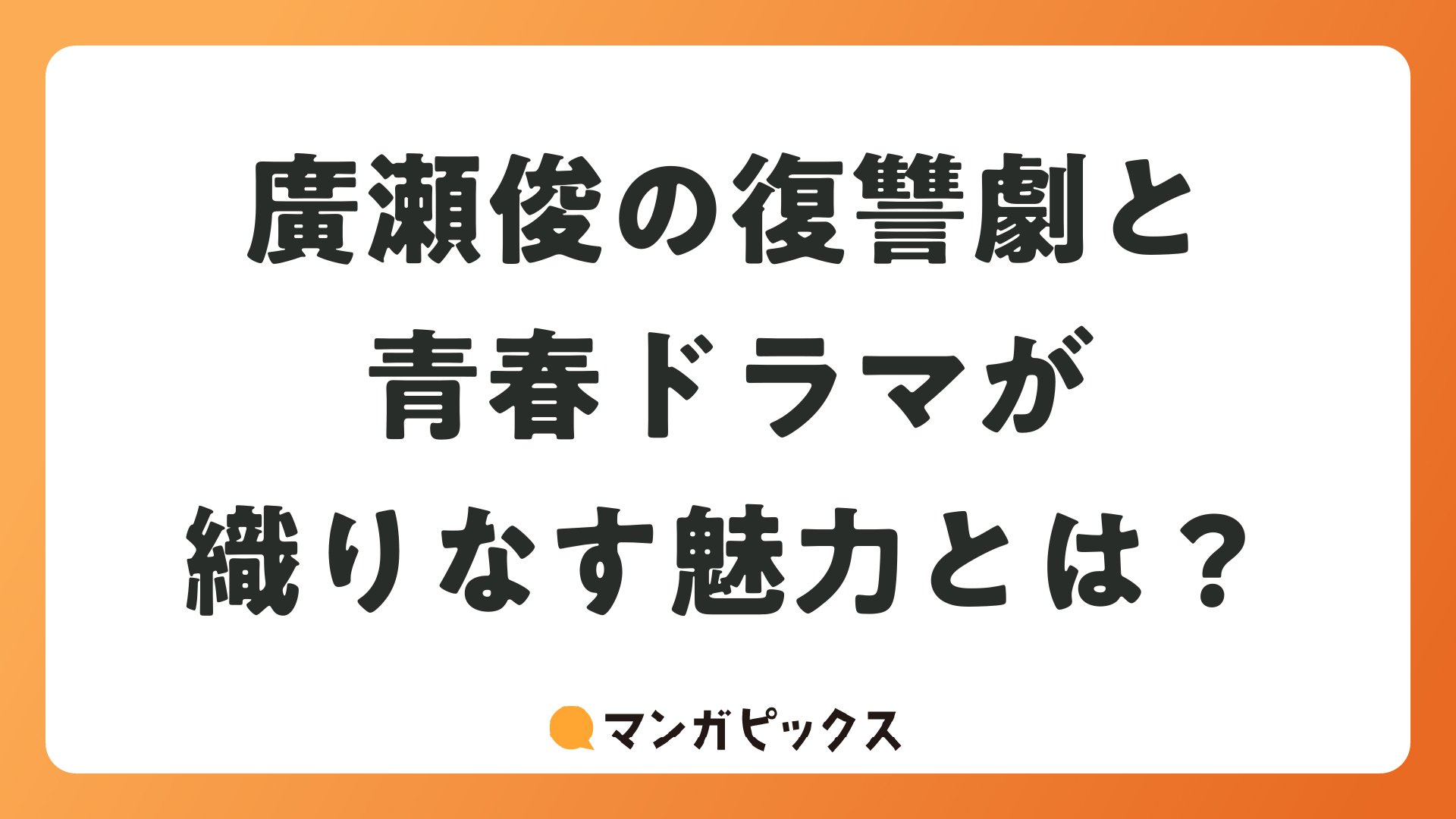 廣瀬俊の漫画は、復讐の爽快感、青春の切なさ、ミステリーの緊張をテンポ良く織り交ぜ、読者の心を強く掴みます。代表作を中心に紹介しましたが、いずれもポジティブなカタルシスを提供する優れた作品群です。マンガ好きなら、ぜひ全作チェックを。