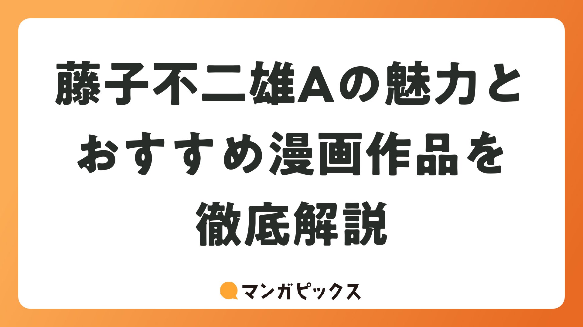 日本漫画史に燦然と輝く巨匠藤子不二雄A(ふじこふじおエー)。子ども向けのほのぼのギャグから、大人の心にぐっと刺さるブラックユーモアまで、驚くほど幅広い作風で読者を魅了し続けてきた作家です。相棒の藤子・F・不二雄とともに歩んだ漫画家人生は、そのまま戦後日本の漫画文化の発展史と重なります。本記事では、藤子不二雄Aの経歴や人物像を振り返りつつ、ぜひ手に取りたい代表作の魅力や読みどころを、マンガ好きの読者に向けてたっぷりと紹介していきます。